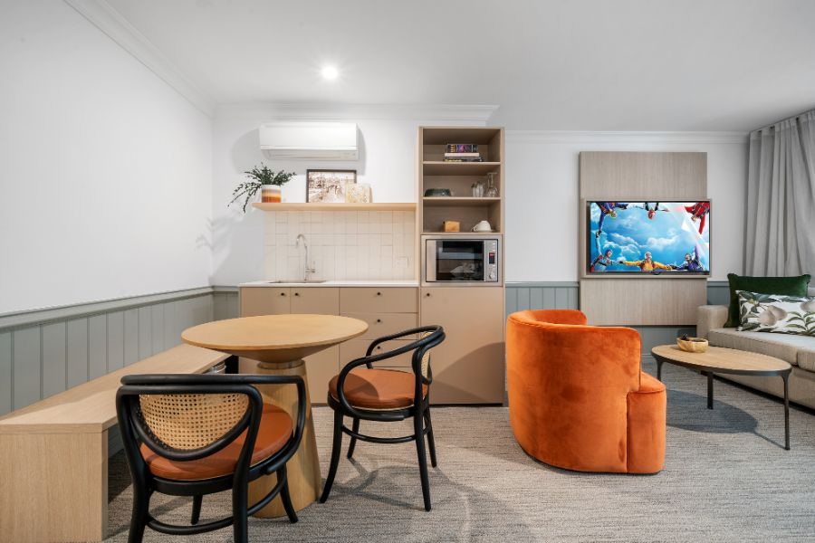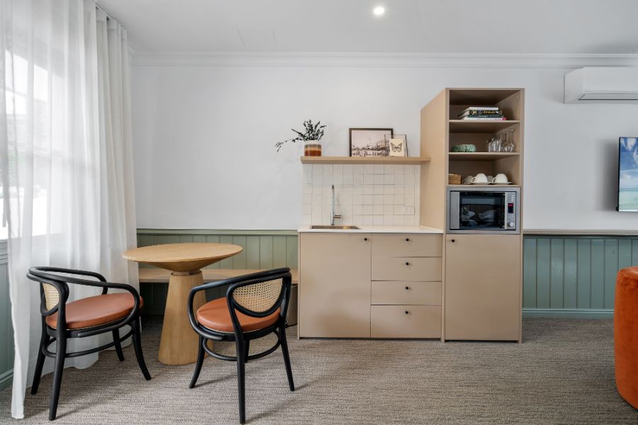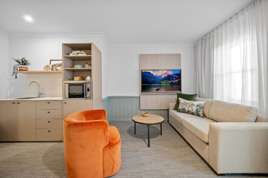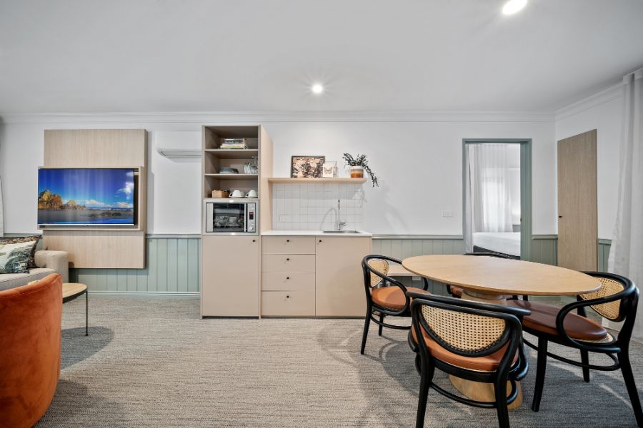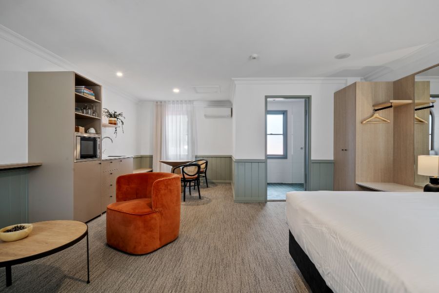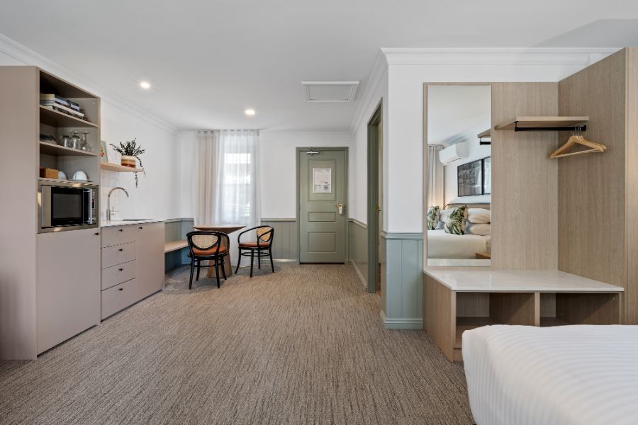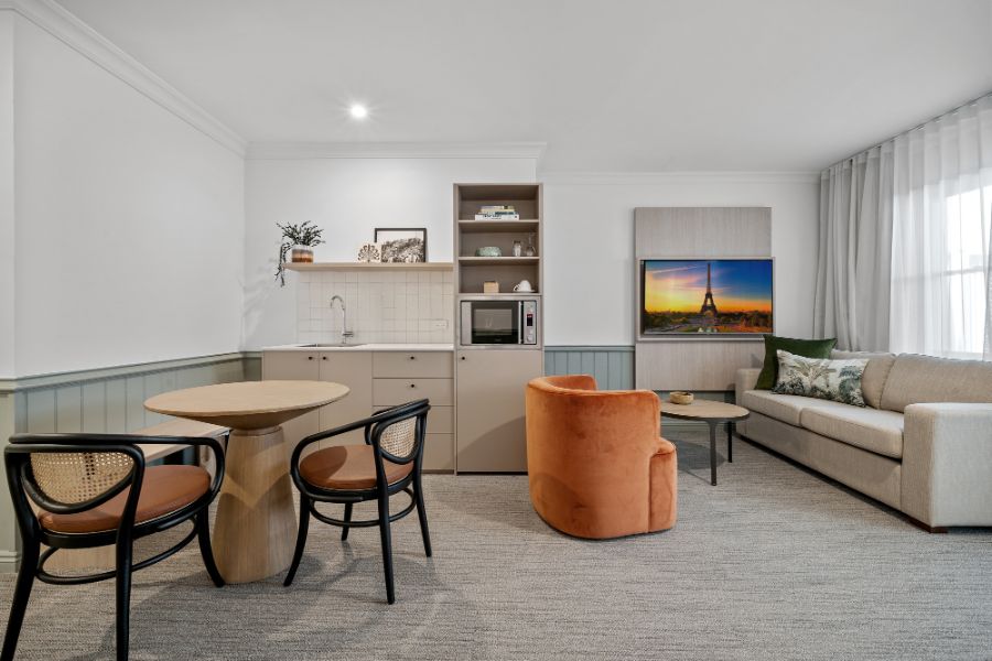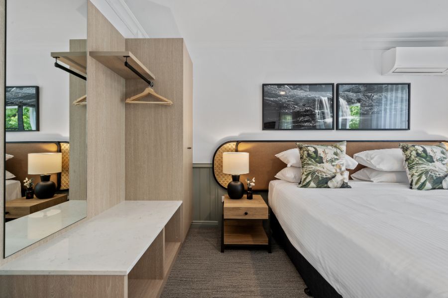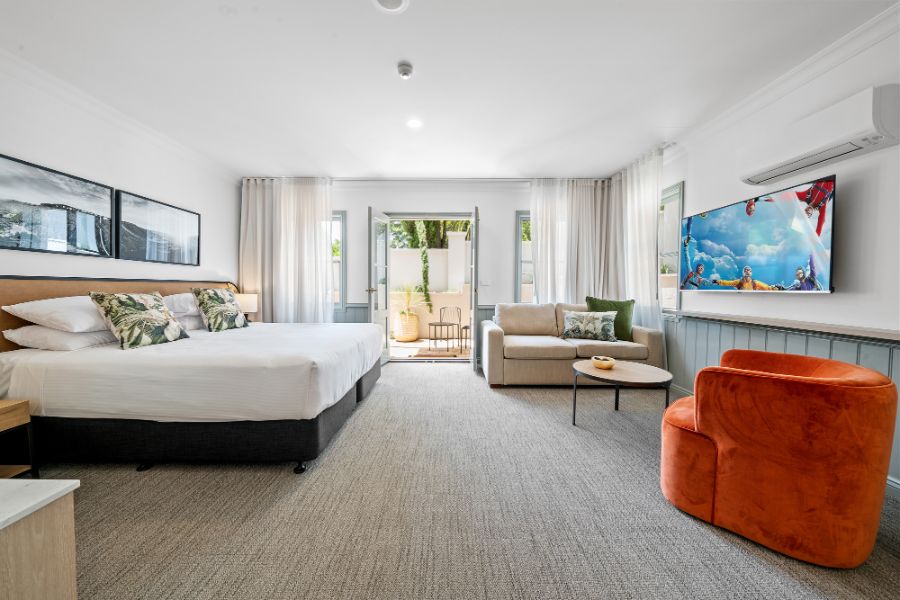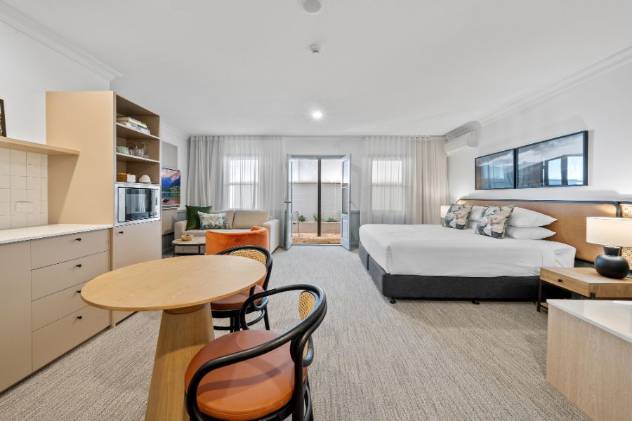 A contemporary spacious studio with your own private courtyard to enjoy the lush hotel garden views. You’ll be staying in luxury with special touches through the studio including Australian made premium bathroom amenities, luxury towels, and linen.