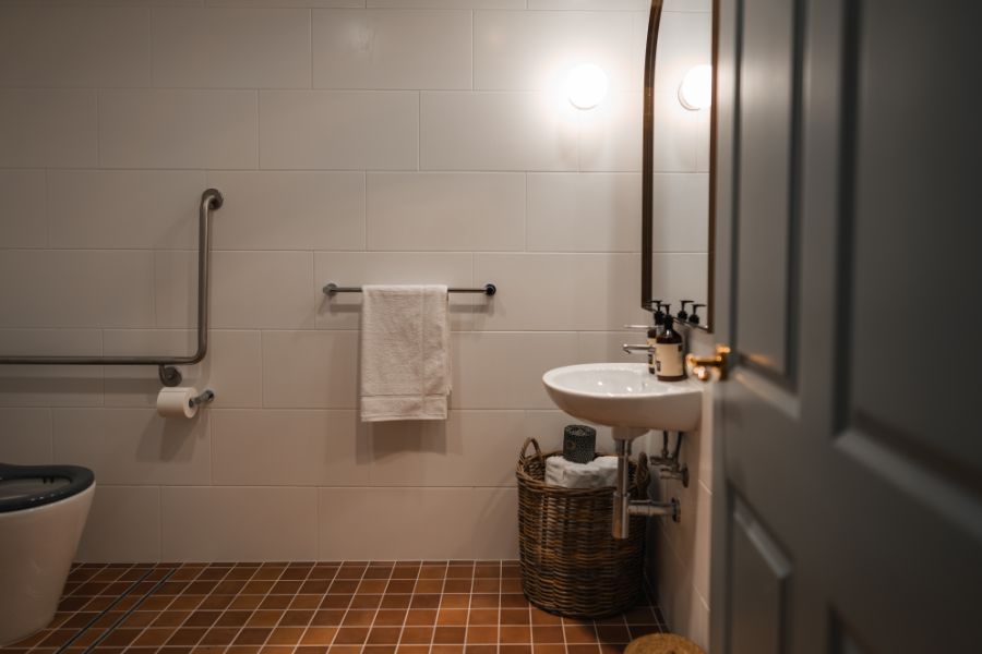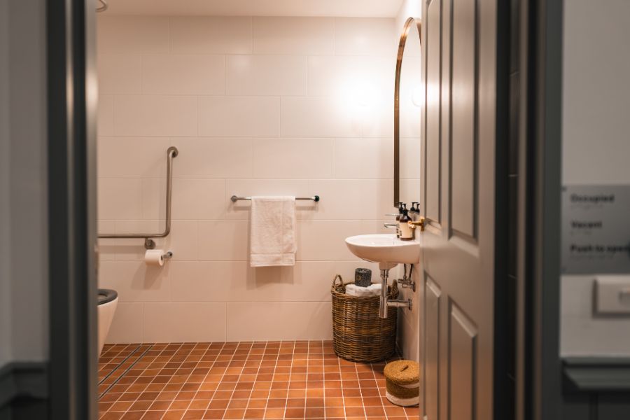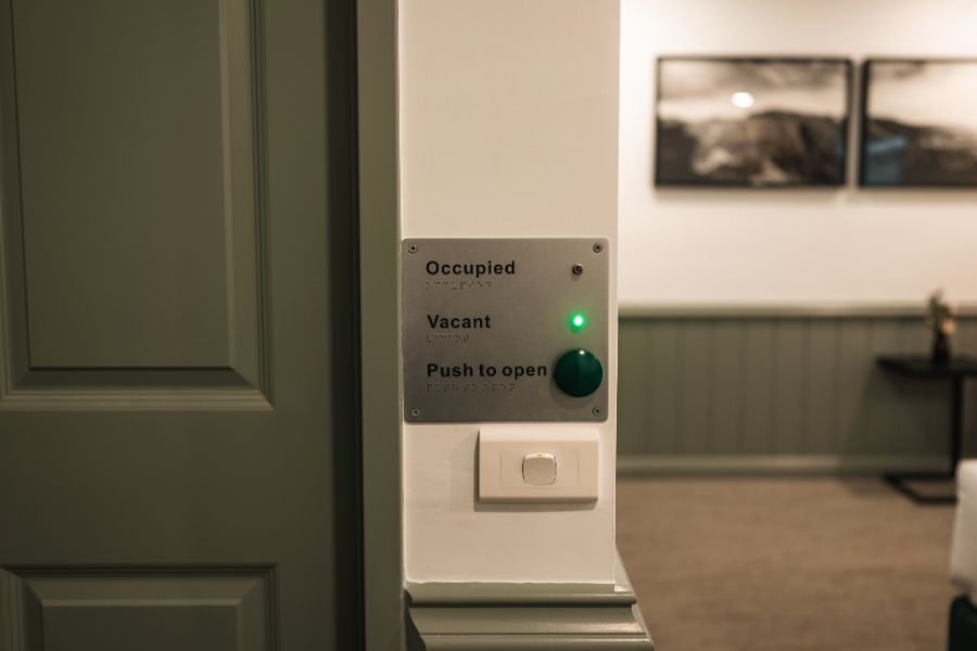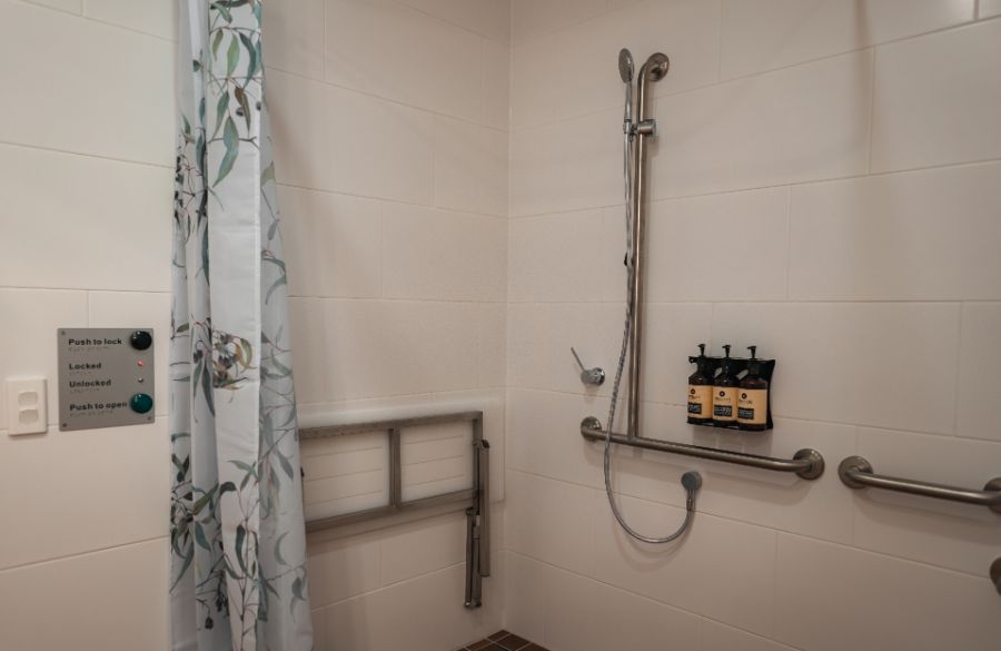 For our valued visitors who require easy access to their room (including wheelchairs) we have custom designed spaces to facilitate a more comfortable stay, including a specially designed bathroom with handrails, lever door handles and luxurious queen-size bed.